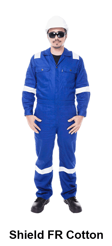 The Shield treated cotton antiflame coverall is fully compliant with International Standard NFPA 2112 and certified accordingly by a third party testing organisation.It is offered as a cost effective alternative to Tecasafe Plus 700 and Aramid 111A. When companies face tight budget constraints but are required to comply with HSE standards that include fire resistant clothing this is the garment of choice.